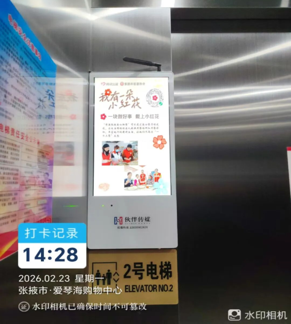 愛(ài)情海購(gòu)物中心(張掖市最大購(gòu)物商超)9個(gè)電梯屏幕在2月1日—28日期間持續(xù)點(diǎn)亮公益之光,以高頻次、廣覆蓋的傳播形式,讓公益理念隨人流傳遞,悄悄走進(jìn)張掖的千家萬(wàn)戶。這抹小紅花,也成為張掖新春里獨(dú)有的暖心風(fēng)景,讓善意雙向奔赴。